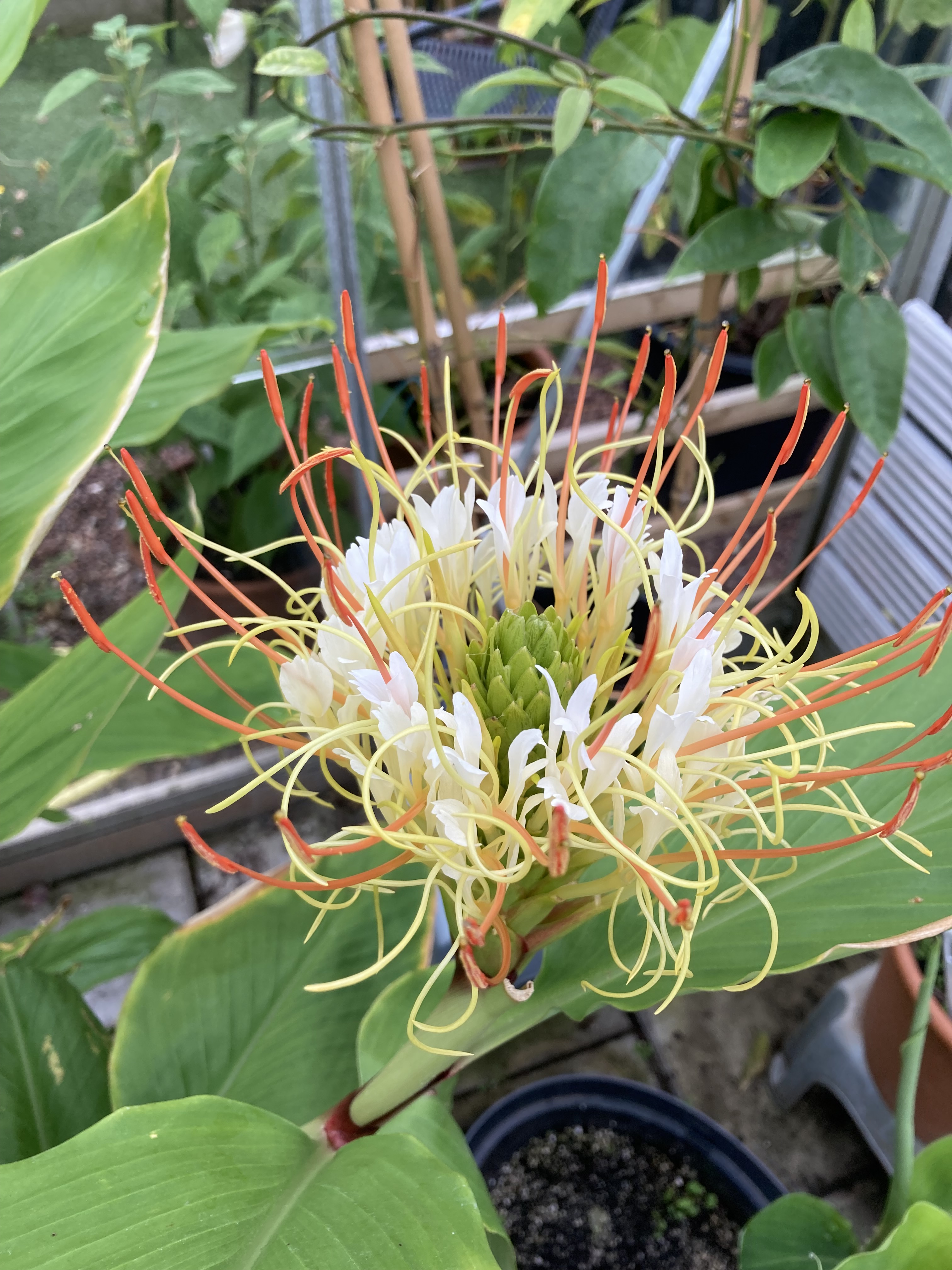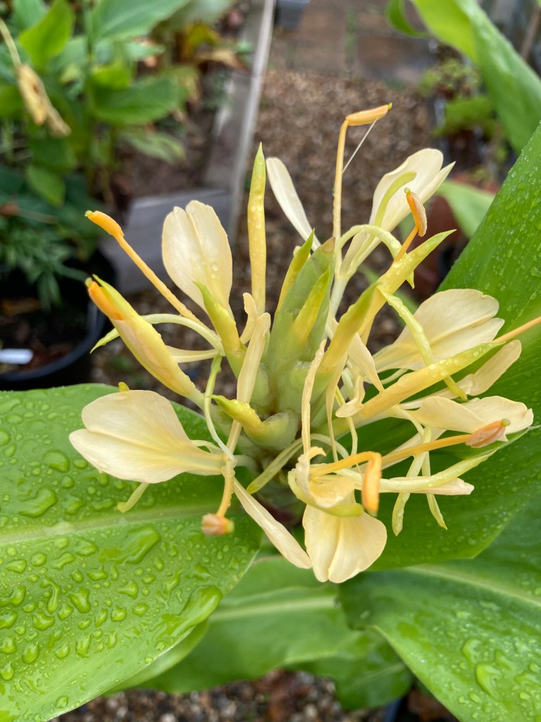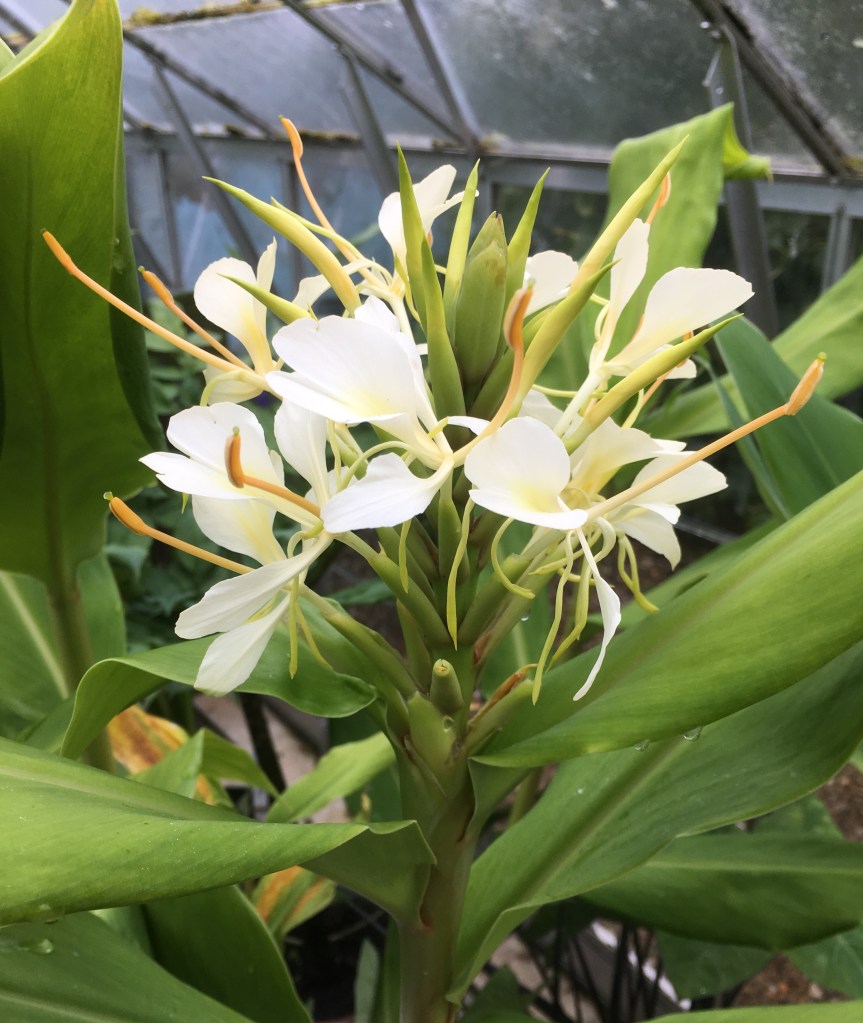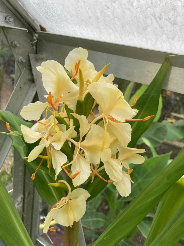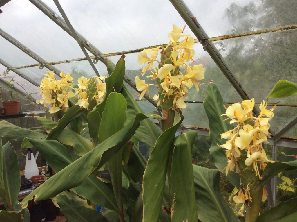 Hedychium ‘Tai Gold Crown’, This is strong growing and tall with lovely flowers. I’m not 100% convinced the name is right (although it came from an obsessive collector) as I can’t see how the name applies. Nonetheless its a beatiful thing (if you have a tall greenhouse!)