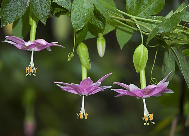 The tacsonias have at various times been a separate species, or made a supersection within passiflora (which is where they are now) they are both fascinating and wonderful because they are pollinated by hummingbirds, have big flowers and have wonderful colours. They also produce edible fruit, what more could you want (other than a scent which they don’t have, but that’s just being greedy)?