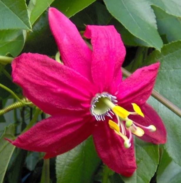 Passiflora tarminiana is what you may have grown if you have bought P. mollissima or grown it from seed. P. tarminiana is paler and the flower reflexes beyond horizontal as above, while P. mollissima remains bowl shaped (see below). This produces edible fruit and is grown commercially in some countries. P. mollissima has the better taste