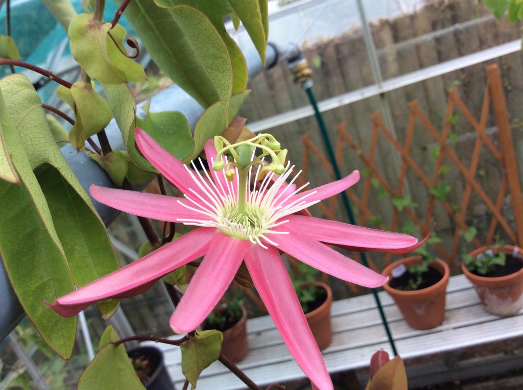 Passiflora ‘Kew Gardens’ This was formerly known as ‘Kewensis’ but lost that name to P. ‘Amethyst’ a few years ago due to the away goals rule. It is a very delicate and lovely hybrid of racemosa and requires a similar bit of persuasion to make cuttings produce new shoots.