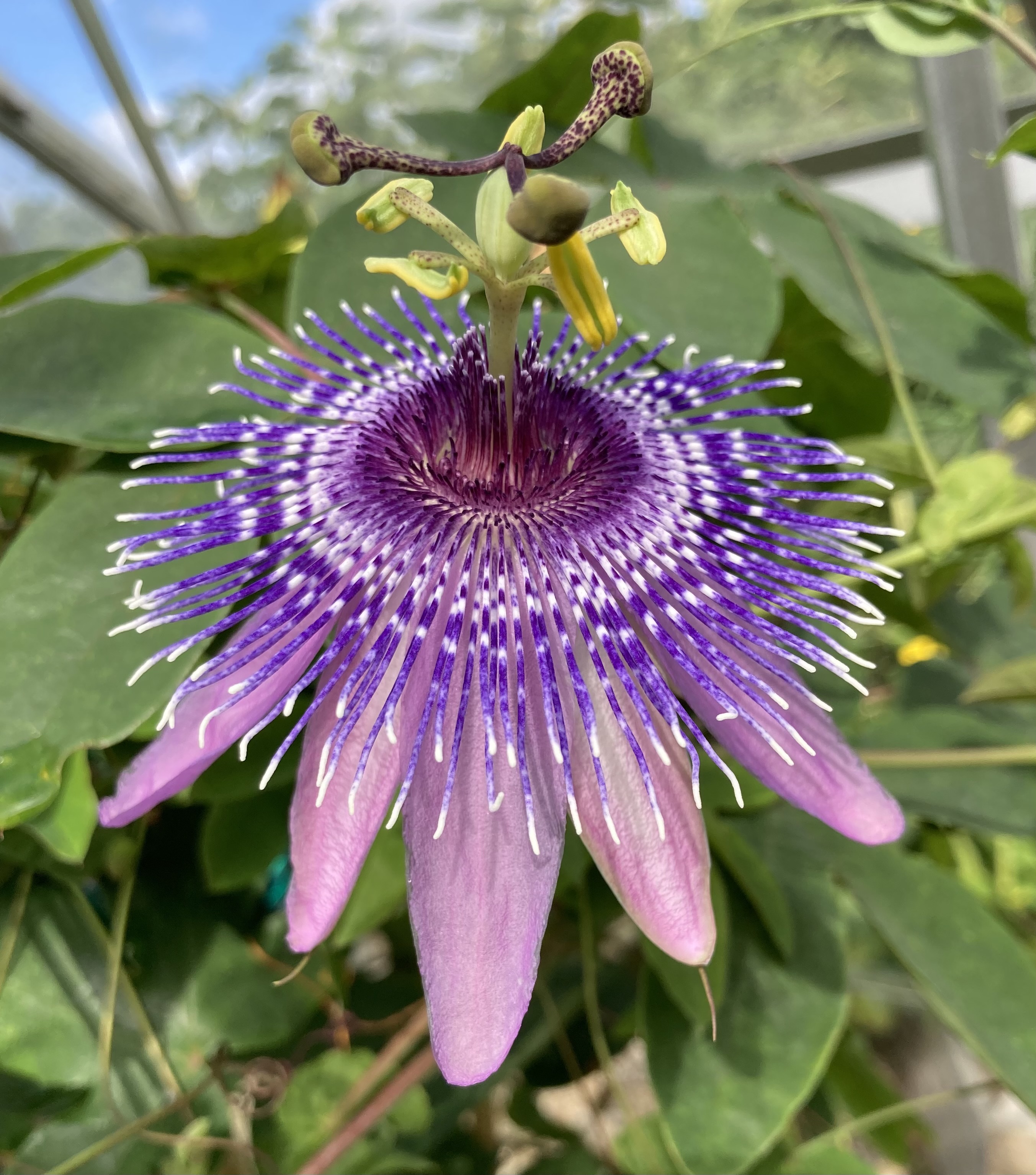 Passiflora foetida: Also known as The Goat Scented Passionflower, or the Stinking Passionflower and is an incredibly variable species. The bad smell comes when the leaves are crushed and it’s really not so bad. The flower having no scent. They are surrounded by a love-in-a-mist style bracts which are quite sticky and keeps insects at bay