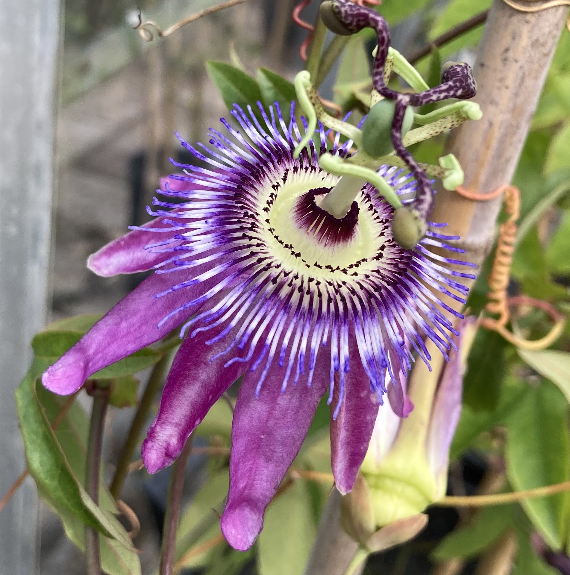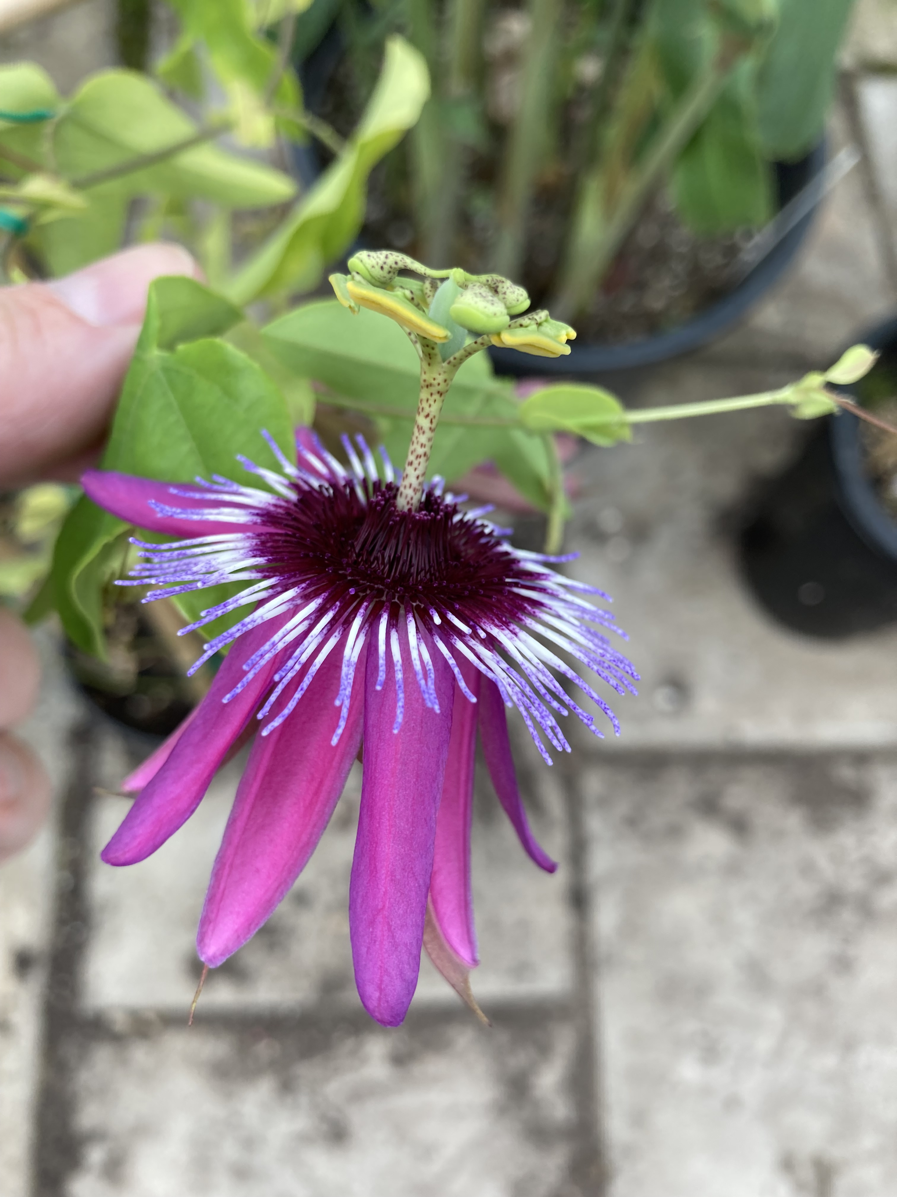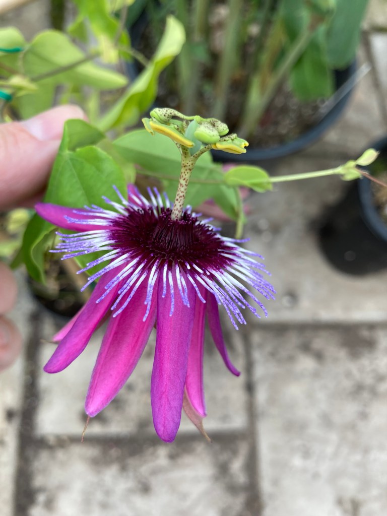I got this under an invalid and misspelt name, Purple Passion is the best match I can find for it, especially since it was from the Netherlands and Purple Passion was a none too successful attempt to sell a pretty passionflower on the mass market in the 2000s. It looks pretty much identical. Unfortunately I don’t know the cross that gave rise to it. Its lovely though and produced viable seed. Still waiting for the first flower from the offspring